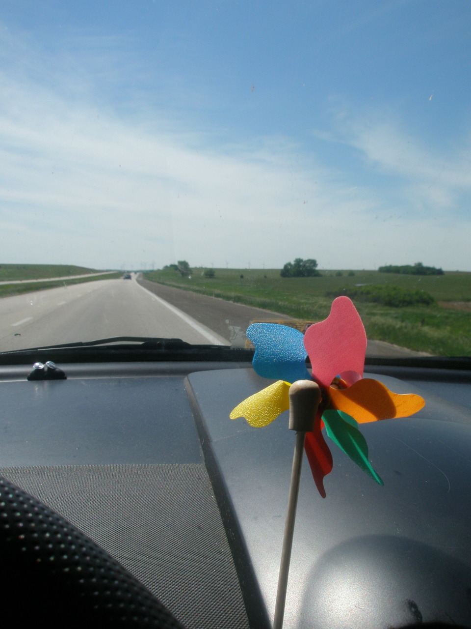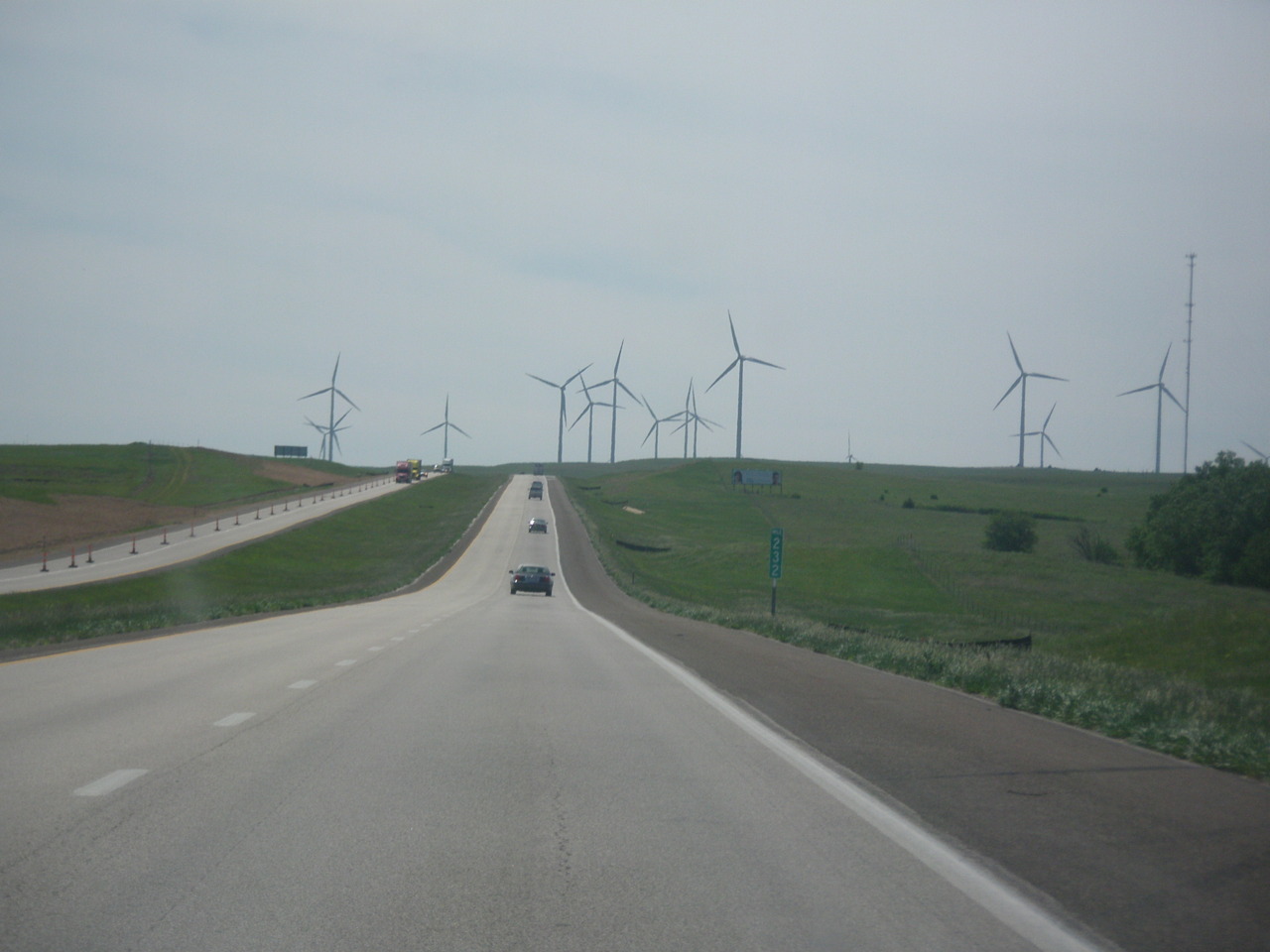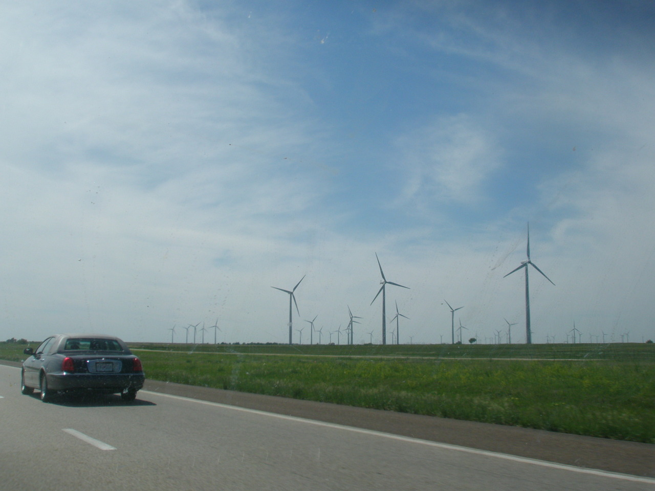 Although wait a second. Kansas did have one redeeming quality. I have to question Not In My Back Yard (NIMBY) people crying out that the sight of wind farms will destroy their scenic landscapes, because honestly this was the most riveting twenty minutes of my entire drive. After seeing maybe five windmills in West Virginia and being told by my Future Energy Choices professor and transvestite Rachael that Indiana had a lot of windmills that apparently I just couldn’t find, I was joyful almost to the point of tears at seeing just hundreds of windmills for miles, just turning in the breeze – you know, generating pollution free power. I will be forever tilting at windmills (I used that idiom terribly, forgive me).