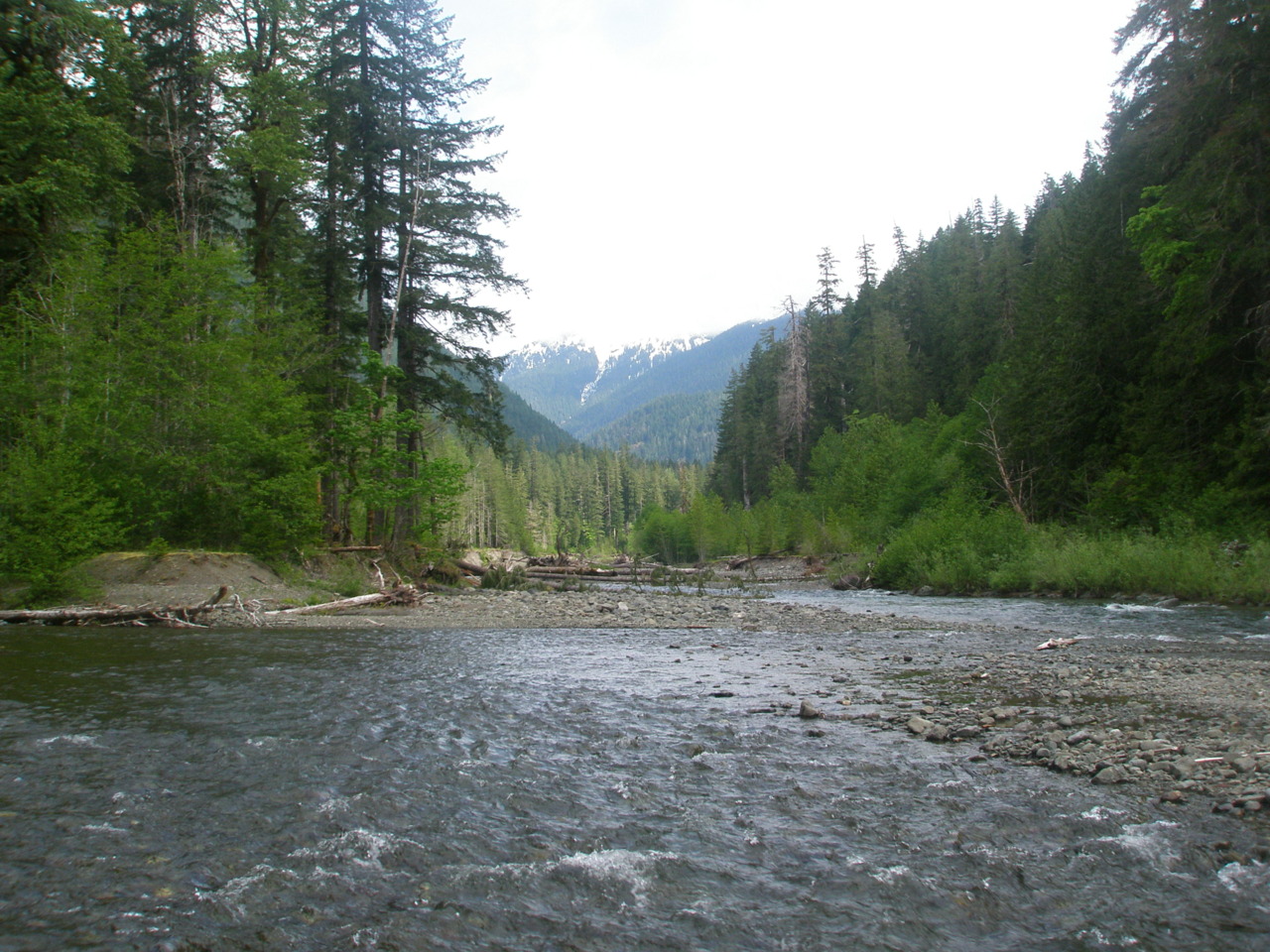 Skokomish River area, Washington 6/9/2011 – 6/16/2011 During my several days in the field, I had some time to think; mostly about nothing, but slightly about how I could possibly convey this research in understandable terms( as you will soon see, I ultimately failed). I toyed with a Lord of the Rings allegory for a very long time. My boss was the very wise leader Gandalf, who every now and then gets lost in Moria and has to sit and think of which way to go. I was Frodo, but without the value of a ring – so essentially I was small, couldn’t carry much equipment, didn’t cook, and would get tangled in Shelob’s webs of river channel branches and require assistance. Also, I would sporadically fall for usually no apparent reason. But I couldn’t quite characterize my other two coworkers under the headings of Gimli or Sam and I already sound nerdy enough just mentioning it here. For a while then I moved onto Mulan – specifically the first half of the “I’ll make a man out of you” song, where the soldiers are training for battle. While my learning curve was certainly just as high as Mulan’s, I have not yet encountered a moment where I am smart enough to retrieve a lodged arrow in a tall tree. This moment may also never come. But again this perspective was a little self-centered with little room for other characters. I wanted a detached, multi-spectral perspective of this experience and thus came up with this: