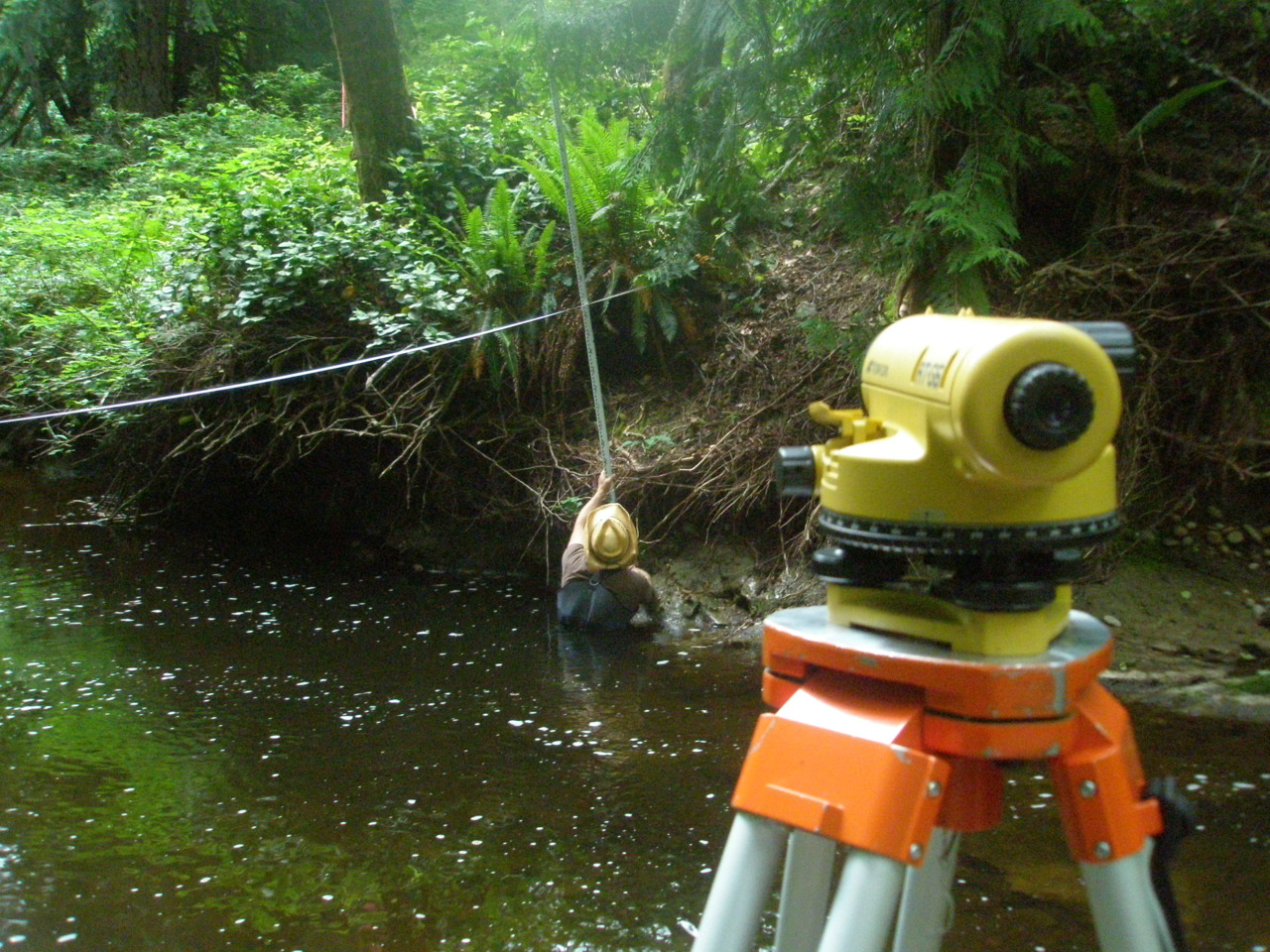 Numerous tools will be employed to quantify these results. The simple act of field research requires many human oriented pieces including tents, sleeping bags, cookware, etc. As many of these areas are designated temperate rainforest, waterproof gear and clothing is highly recommended. Though the definition of summer seems a little twisted here, many are comfortable in shorts and a t-shirt while others (caughMEcaugh) require three or four layers of clothing, a hat, and gloves. For field word, chest-high waders are practically lived in, spurring many locals to critique our fishing technique (or lack of even trying). As the feet of waders are simply flimsy rubber socks, neoprene socks and sturdy boots are also required. For the research itself, we use autolevels, radios, GPS, pencils, water-proof notebooks, stadia rods, 100, 50, and 30m tape measurers, cameras, rock size categorizers (the technical term for them, of course), and probably some other stuff.
