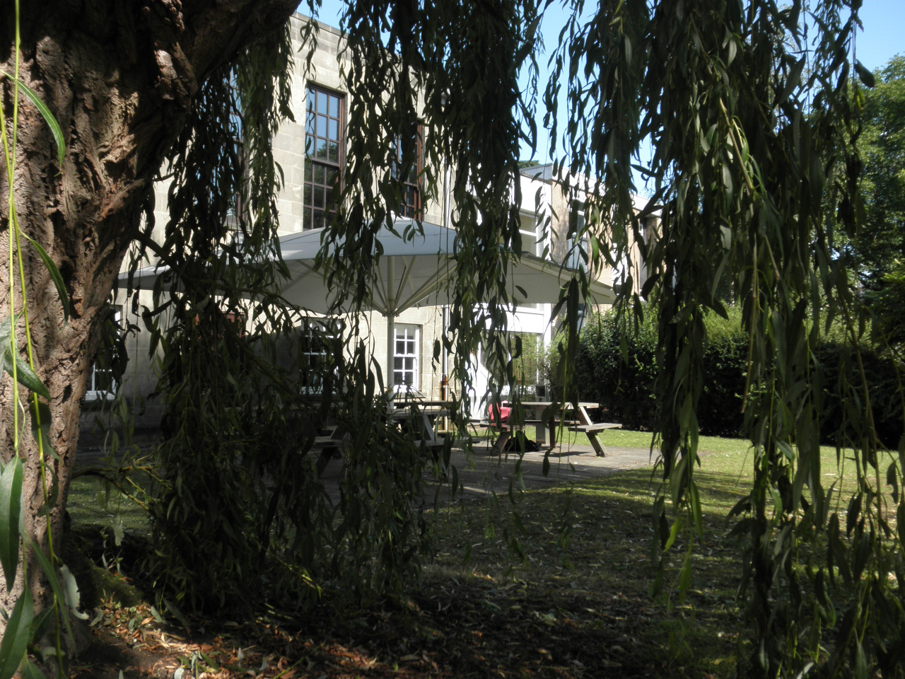 The four girls’ rooms faced each other across a little hallway where we often hung out and talked and planned, our laptops resting on the drab carpet. Nearby, a door opened up to the courtyard of Hugh Stewart Hall. Downstairs, Ryan lived in a room next door to the small kitchen. This little corner was all ours. But the rest of the Hall was periodically invaded by summer school groups with screaming children. For most of the summer, it seemed to be hundreds of Italian middle schoolers in a summer program to learn English. But recently, British high-schoolers had taken over in what seemed to be a “pre-college” experience week. They had thrown M&M’s at Missie’s window earlier in the week and were generally loud and obnoxious. Tonight appeared to be their last night and in celebration a dance – complete with pizza and a DJ and all of his sound equipment – was being held right outside our windows. Close to midnight on a “work-night” the noise had yet to abate. Then Steve the security guard walked in.