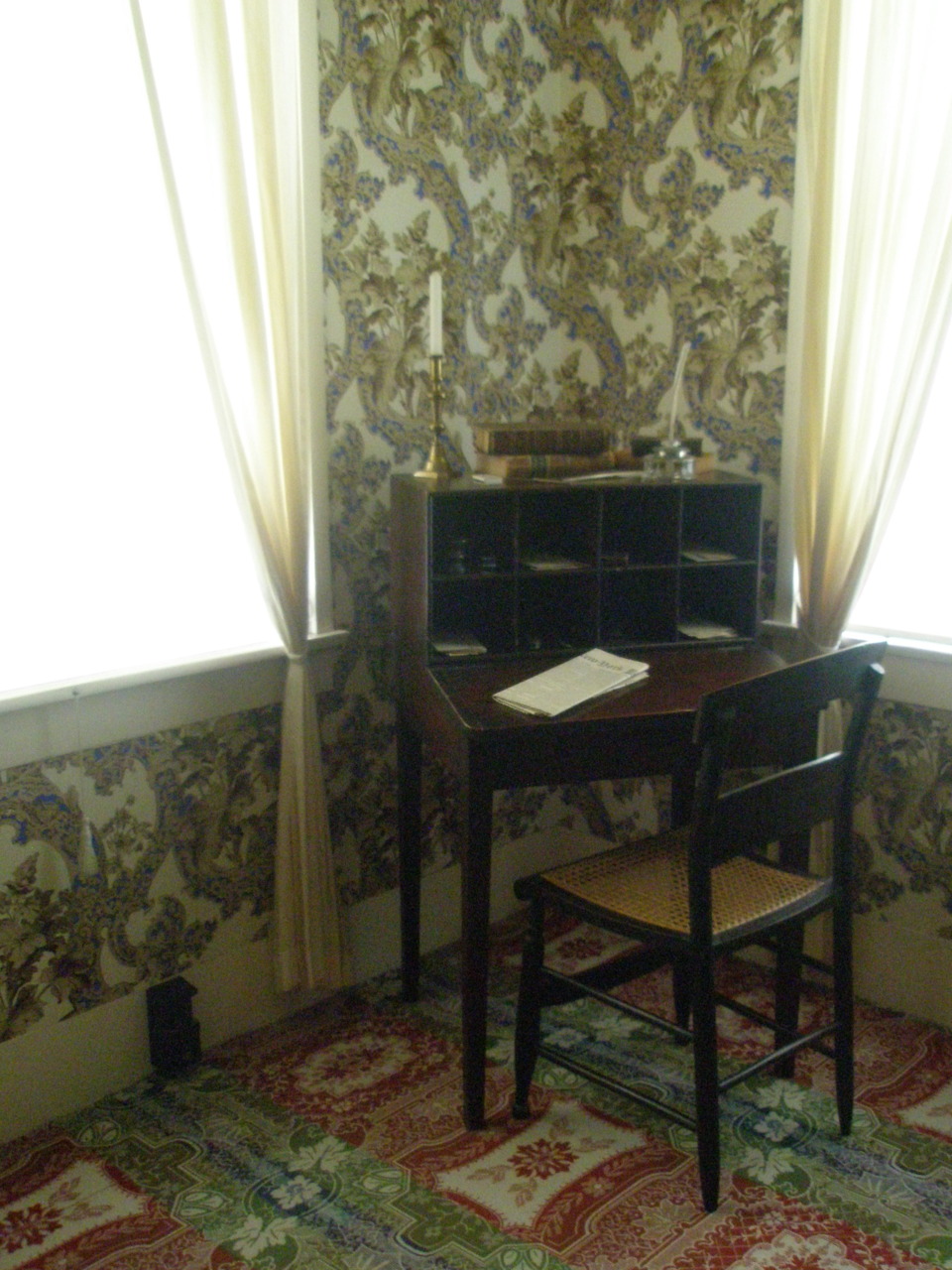 Our park Ranger emerged from the Lincoln home and came up to us. In any other light she would have been very pretty, but the awkward Park Ranger uniform was the opposite of flattering on almost all of the women there. We soon learned that she was a pre-med student here for a summer job (I had to smile at the whole history/science thing). She adeptly led us through the house, pointing out the book shelf Lincoln stood next to when he learned that he was the Republican nominee, the original pieces of furniture in each room, the fashion behind the blinding wall paper, how Lincoln would have sat on the floor much of the time since the chairs didn’t fit his frame, and to make sure to hold onto the banister as it was the same one Lincoln would have touched when he climbed the stairs (creepy awesome feeling commence). When we got to the last room of the house, the kitchen, she made a point to say that this one room was about the size of the log cabin Lincoln was born in. Without any sort of formal education he moved his living circumstances from frontiersman to lawyer to president, from one room to a two story house to the white house. Pretty sweet. I wandered around the town square, admiring the ‘Lincoln Library’ (a fancy name for the public library) and ended up in front of Lincoln’s law office. I followed the tour guide a little and peeked in, but I was about to keel over from boredom (the guy literally spent 20 minutes going over routes in the historic post office that was only open for like 3 years on the floor below before taking us upstairs to the offices – poor students next to me who had to keep going) so I ducked out early, and headed back to the car.