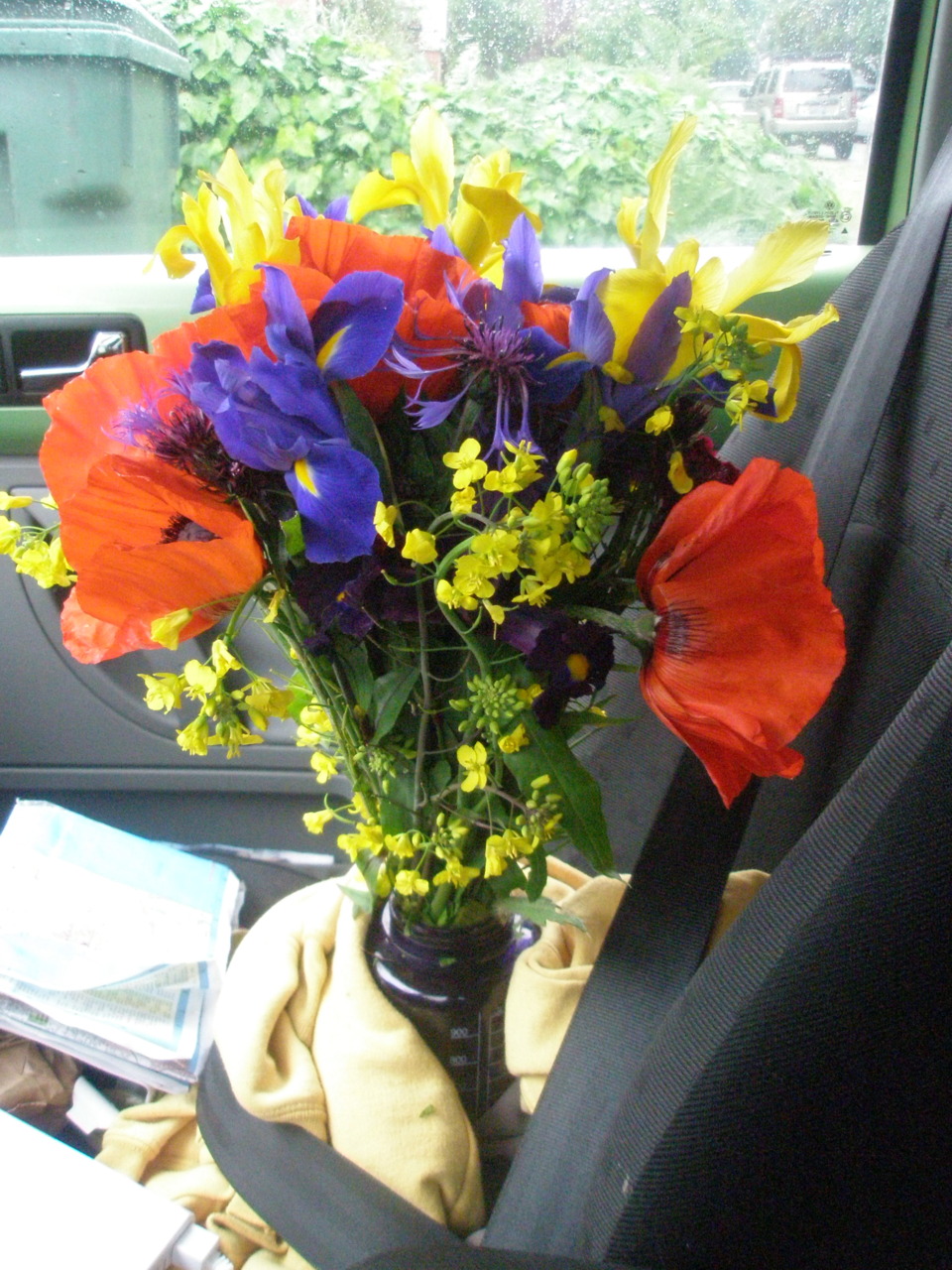 Posted on June 23, 2011July 2, 2017 by Born2WanderMy Boo-K safely buckled, held by my water bottle MY FLOWERS