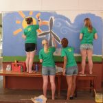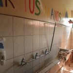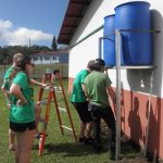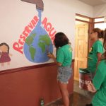 We helped set up rain collection systems to combine with the normal plumbing that hooked up to the drinking fountains and bathrooms. We also painted the walls with colorful sustainable messages, celebrating the area’s renewable energy and reminding children to conserve water.