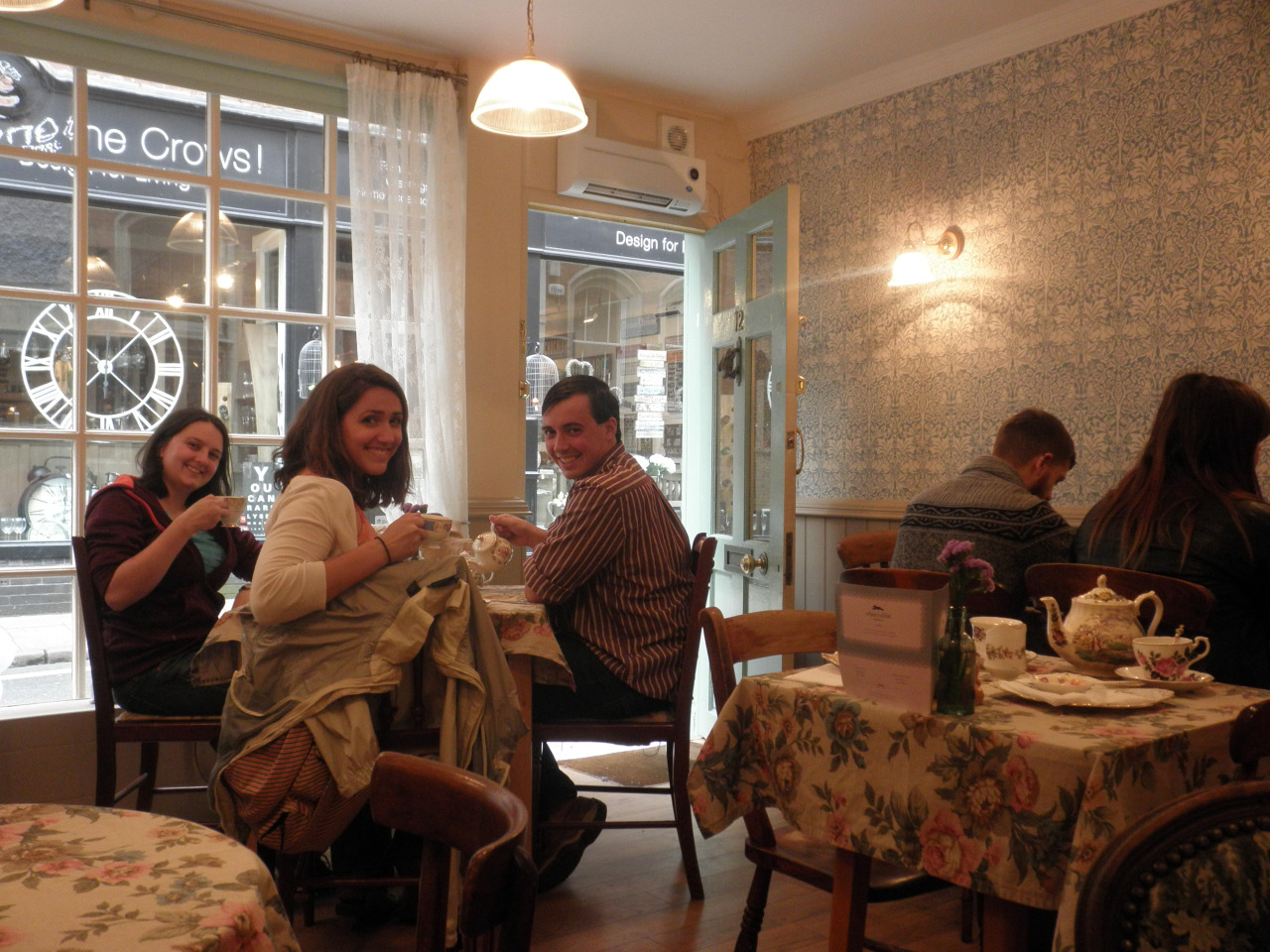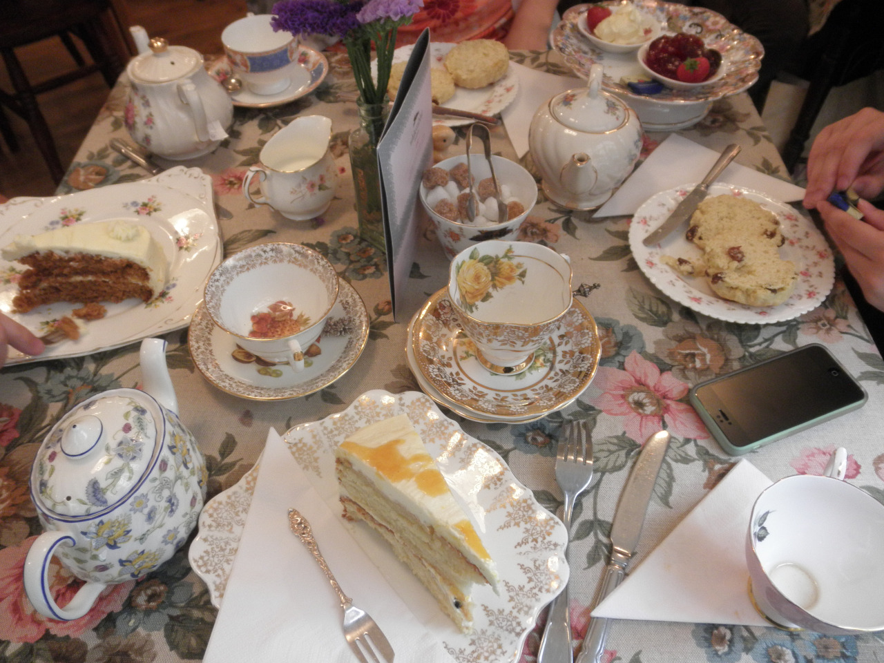 The building was along a small side street but still close enough to hear the echo of a band and shouting from a nearby market. Inside was small and cozy; the doorway was like a portal into a more proper, intimate way of life. We decided on sandwiches, tea, and cake rather than a proper afternoon tea. The dishes filled up the table.