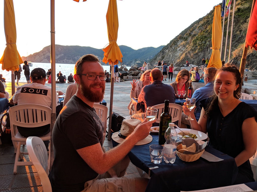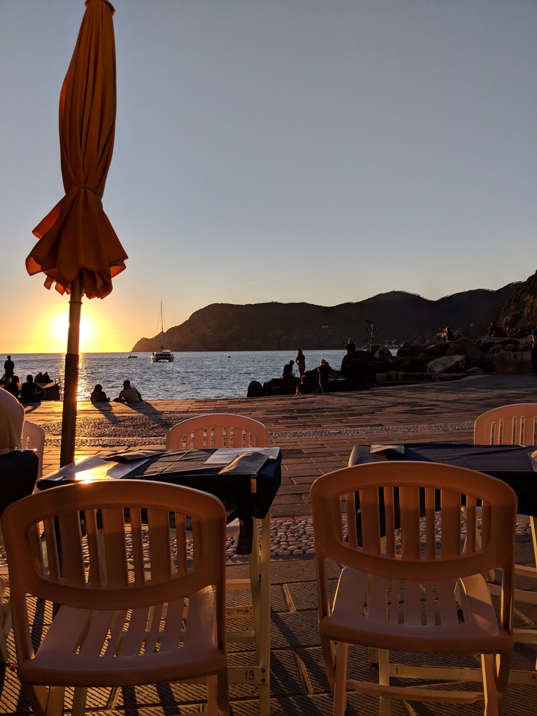 We dropped our stuff off, meandered back down the stairs to the main street of the village and toward the harbor as the sun set. We grabbed a table right on the water and I enjoyed Italian pesto gnocchi and a local wine. Between the views from our AirBnb, the promise of hiking, and our sunset dinner, Cinque Terre grabbed us in the most wonderful way possible from the very beginning.